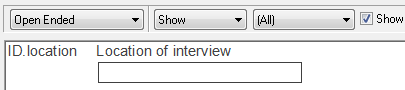 - Selecteer All in de volgende dropdown lijst ontvink de Show box. De ID.location variabele wordt verstopt.