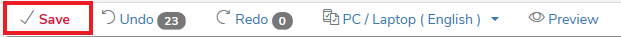 Dit is een goed moment om je vragenlijst te bewaren. De Save button bevindt zich in het Online Designer menu. De letters kleuren rood wanneer er wijzigingen werden aangebracht, die nog niet bewaard werden.